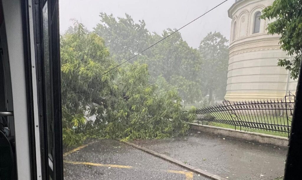 O furtună puternică a provocat prăbușirea unui copac la intersecția Bulevardului Regina Maria cu Strada 11 Iunie, afectând grav circulația în zonă. Arborele, care se afla în curtea Bisericii Sf. Nicolae Vladica, a căzut cu atâta forță încât a rupt și gardul bisericii, generând astfel o situație de urgență.
