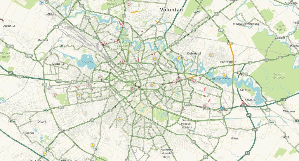 Aplicații precum Waze și Google Maps au indicat timpi de parcurgere “pe verde” față de o zi normală, chiar și pe artere cunoscute pentru ambuteiaje, cum ar fi Iuliu Maniu sau Șoseaua Pipera.